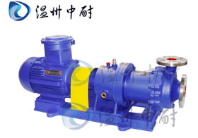 高溫磁力驅(qū)動(dòng)離心泵(簡稱高溫磁力泵)通常由電機(jī),磁力偶合器,水冷卻裝置和耐腐蝕離心泵四大部分組成,其主要特點(diǎn)是利用磁力偶合器傳遞動(dòng)力。當(dāng)電動(dòng)機(jī)帶動(dòng)磁力偶合器的外磁鋼旋轉(zhuǎn)時(shí),磁力線穿過間隙和隔離套,作用于內(nèi)磁鋼上,使泵轉(zhuǎn)子與電動(dòng)機(jī)同步旋轉(zhuǎn),無機(jī)械接觸地傳遞扭矩。在泵的動(dòng)力輸入端,由于液體被封閉在靜止的隔離套內(nèi),沒有動(dòng)密封因而無泄漏。磁力偶合器的磁性材料采用耐高溫型稀土永磁材料,能承受280度以下的高溫介質(zhì)而保持強(qiáng)大的磁力扭矩。在電機(jī)與磁力偶合器之間加裝了水冷卻裝置,防止泵送高溫介質(zhì)之熱量傳導(dǎo)至電機(jī),以保持電機(jī)的正常運(yùn)行,從而達(dá)到無泄漏輸送高溫介質(zhì)。